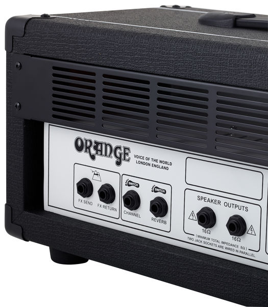 120-ваттный Orange CR120H BK гарантированно обеспечивает нужное количество звука на репетициях, в клубах и средних концертных залах. Он легко «прокачает» стек из одного или двух кабинетов 4х12”. При этом будучи «тяжеловесом» с акустической точки зрения он легко помещается в личном транспорте и не требует личных грузчиков..