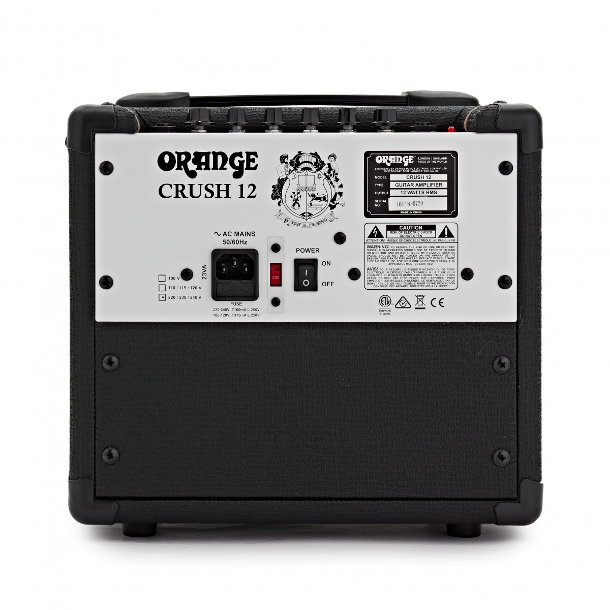 Crush 12 – cамый маленький полноформатный комбик в серии Orange Crush, но с ничуть не меньшим серьезным подходом к аналоговому звучанию. Этот одноканальный комбо имеет полноценный 3-полосный эквалайзер и отдельную регулировку Overdrive, что позволяет настроить любой звук от прозрачно чистого до фирменного кранча Orange.