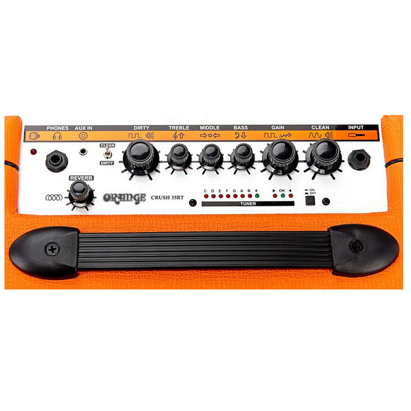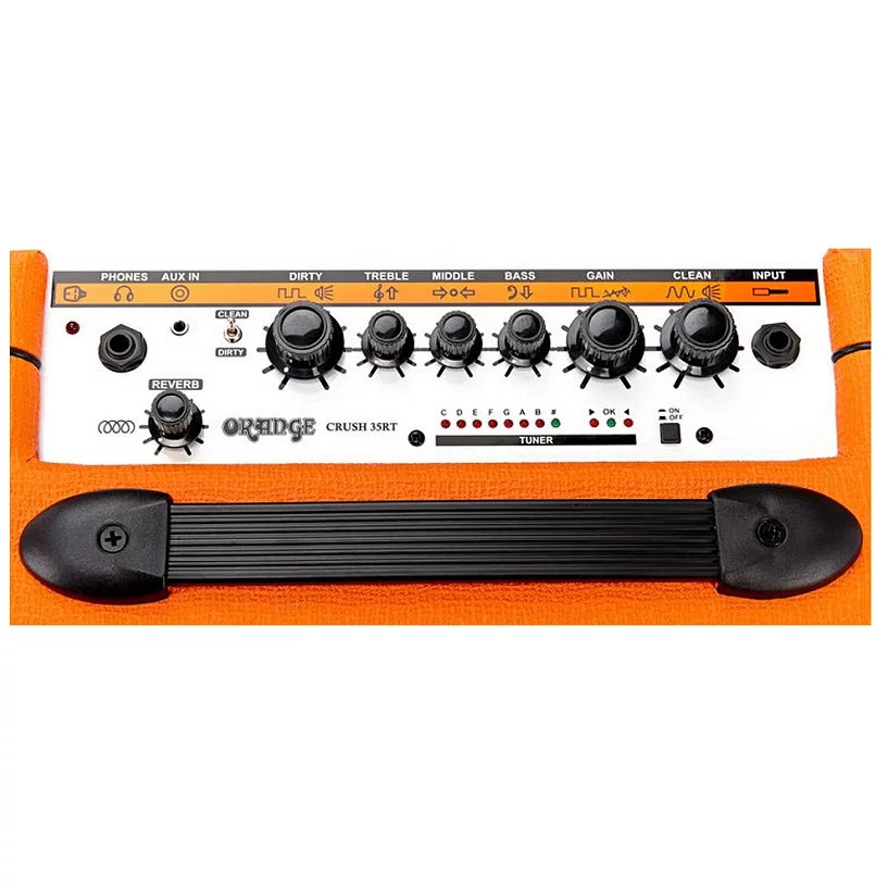 Сrush 35 RT демонстрирует серьезный подход к делу, который не часто встретишь в комбо аналогичного формата. Усилитель имеет два канала, охватывающих полный спектр звука от чистого до хай-гейна, раздельные настройки громкости этих каналов, настройку гейна перегрузки и в дополнение к всему - гнездо под футсвитч для ножного переключения каналов (опция приобретается отдельно). Встроенный ревербератор добавляет объема в звук, а если вам его недостаточно, можно подключить педали эффектов в буферизированную петлю эффектов. Встроенный тюнер позволяет настраивать инструмент без дополнительных аксессуаров.