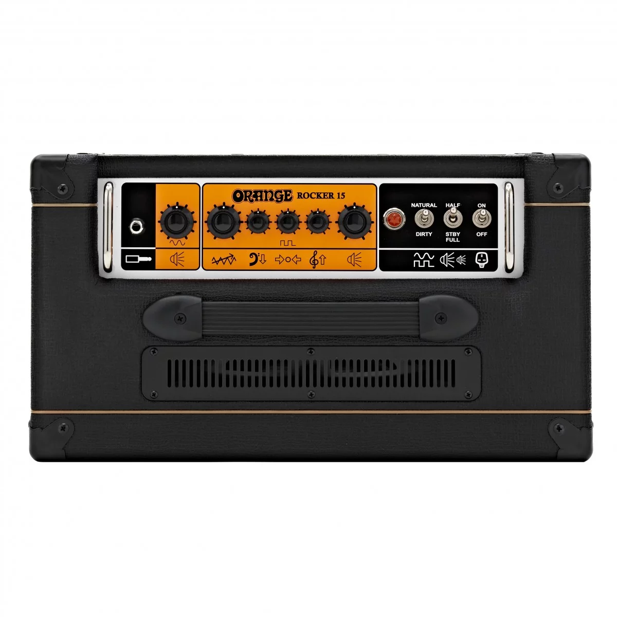 Компактный кобмо Orange Rocker 15 имеет два канала лампового звука. Первый, винтажный чистый, имеет единственную регулировку - громкость, и рассчитан на тех, музыкантов, кто предпочитает получать перегрузку в основном от секции мощности. Совместить такой подход с домашним примененнием помогает понижение выходной мощности, которая переключается в диапазоне 0.5, 1, 7 и 15 Вт.
