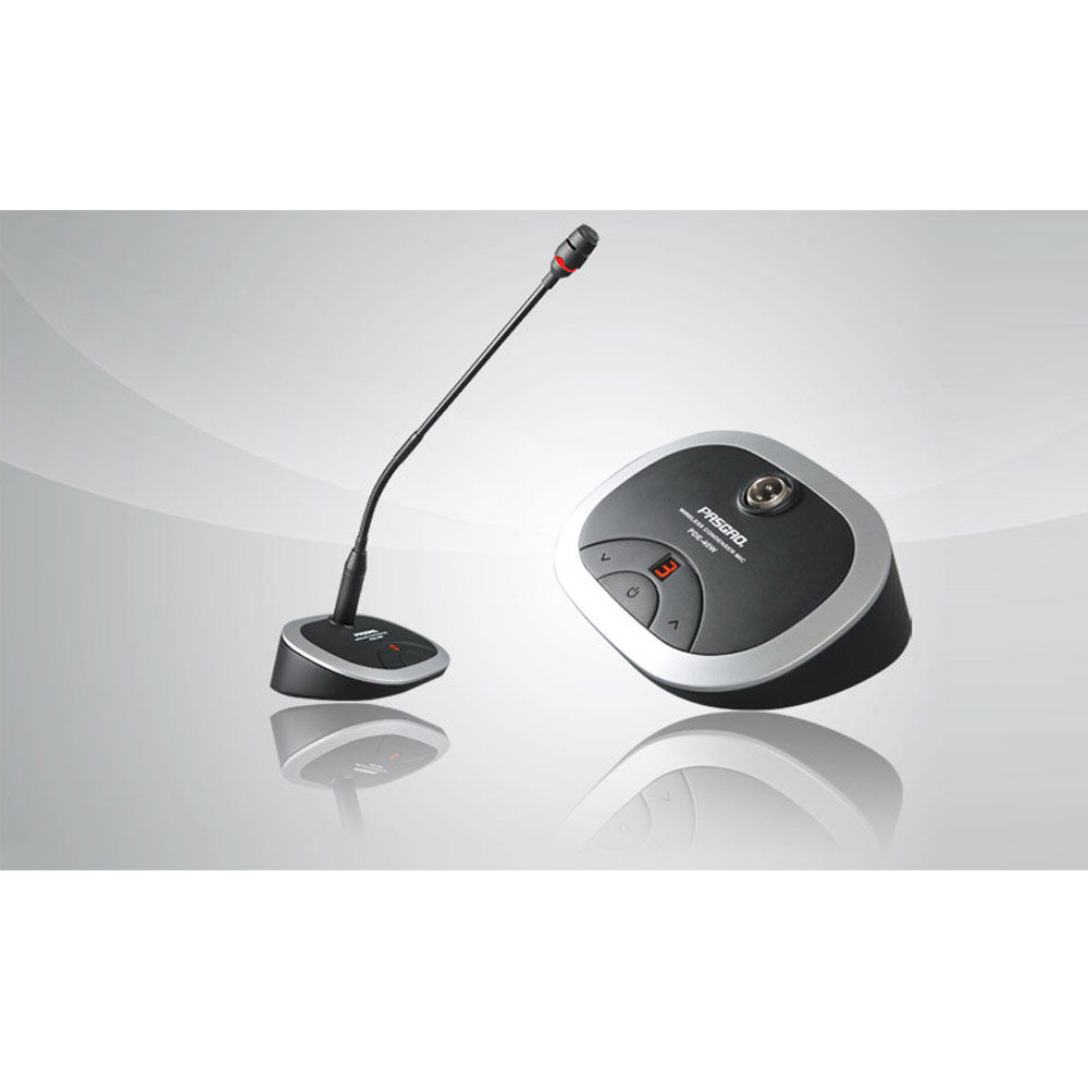 "Гусиная шея", на которой расположен конденсаторный микрофон высокой чувствительности, имеет одно гибкое колено и светодиоидный ободок индикации включения микрофона. Каждый микрофон снабжен ветрозащитой.