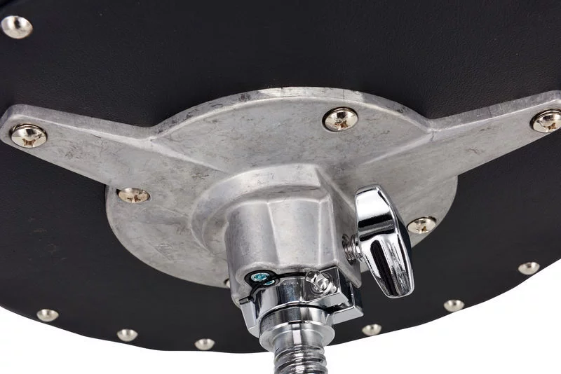 - Специальный переворачиваемый зажим позволяет сиденью либо вращаться, либо быть жёстко зафиксированным, в зависимости от предпочтений барабанщика