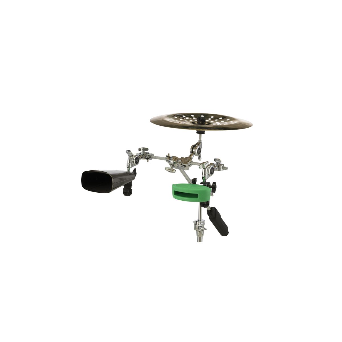 Держатель GyroLock имеет зону для монтажа перкуссионных аксессуаров таких как ковбелл, темпо блок и т.д.