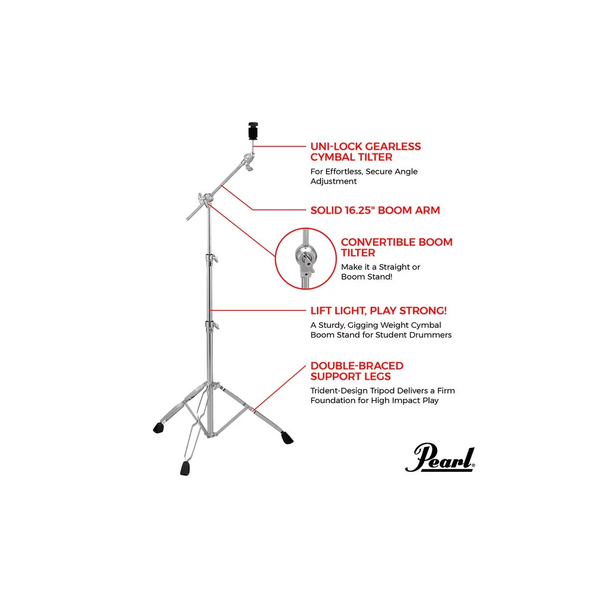 Лёгкий вес, полная функциональность и надёжность Pearl. Наклонная стойка для тарелок BC-830 с двойными ножками - прочное и лёгкое решение как для начинающего, так и для продвинутого барабанщика. Прочная наклонная стрела оснащена держателем UniLock, а надёжное основание поддерживает трёхуровневую основную секцию, которая регулируется по высоте. Стойка отлично подойдёт для локальных выездных выступлений благодаря лёгкости и компактности при транспортировке.