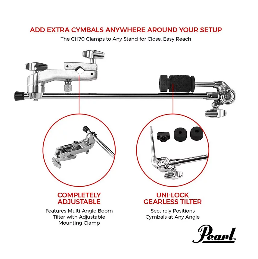 Держатель CH-70 оснащён стрелой с креплением для тарелок и быстросъёмным монтажным кронштейном, предназначен для тарелок типа сплэш, когда не требуются полноразмерные стойки.