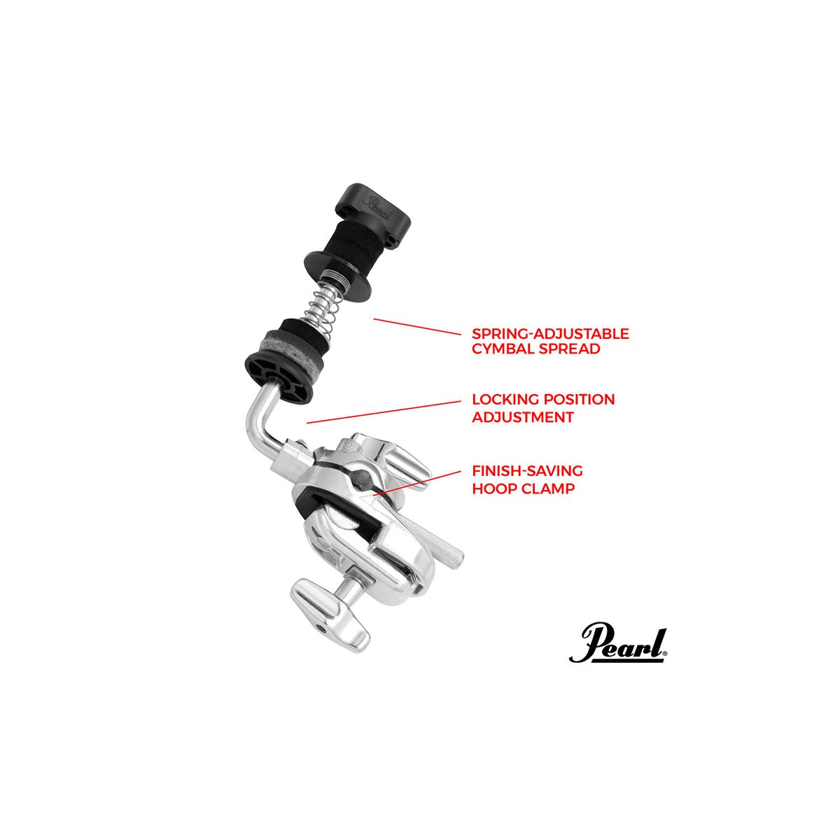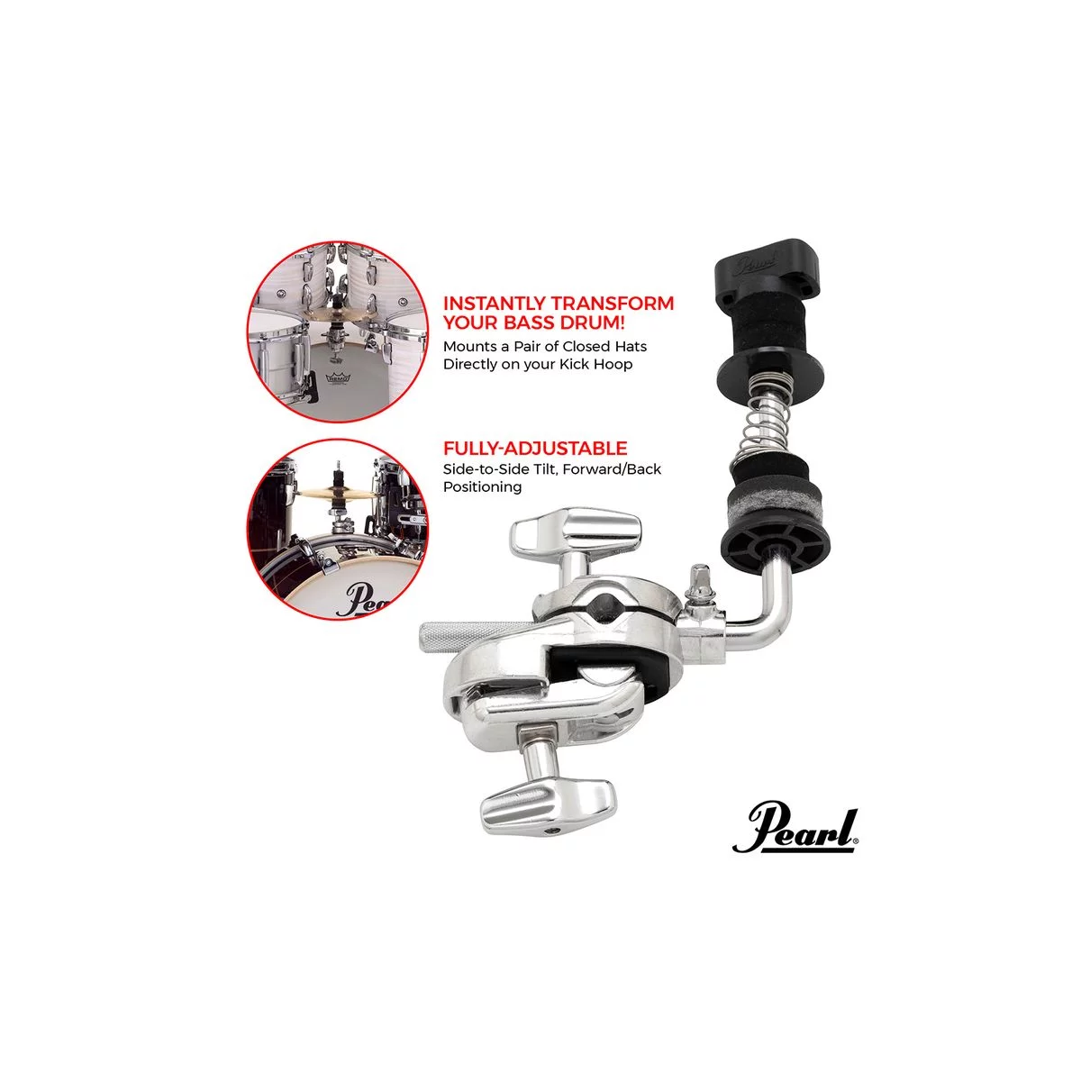 Имея возможность разместить закрытый хай-хет прямо на бас барабане, держатель Pearl CLA-130 позволяет разнообразить исполнение путём добавления дополнительных акцентов и подходит для размещения стеков. Зажим держателя отделан мягким материалом, чтобы не повредить покрытие обода бас барабана. Расстояние между тарелками регулируется приужиной и может быть быстро изменено путём поворота верхней закрутки.