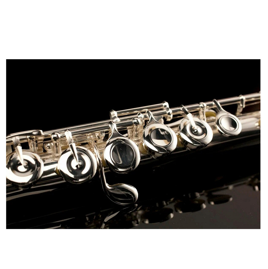 Цельная главная ось механизма флейты, начиная от верхней C, устраняет боковое движение механизма клапанов при нажатии и делает работу клапанов идеально точной.