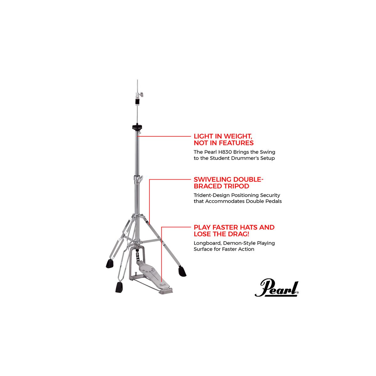 Стойка для хай-хета H-830 с удлинённым футбордом в стиле педалей для бас барабана серии Demon - это исключительно прочная и лёгкая стойка для начинающих и продвинутых исполнителей. Плавный ход и быстрый отклик данной стойки - важные качества незаменимые для современного барабанщика. Прочное трёхногое основание поддерживает двухуровневую основную секцию, и может поворачиваться в сторону, что позволит добавить двойную педаль в вашу установку. Благодаря небольшому весу H-830 отлично подойдёт для перемещений по городу. Литой зажимной узел оснащён нейлоновой втулкой для надёжной регулировки высоты и бесшумной работы.