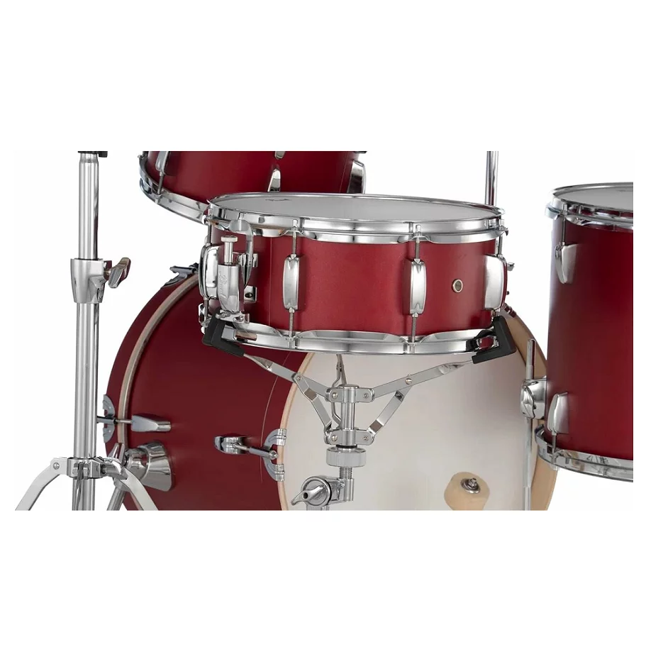 Барабаны Pearl серии Midtown оснащены всем необходимым для исполнения в ограниченном пространстве. Пробивная теплота звучания корпуса из азиатского тополя идеально подходит для заполнения небольших площадок необходимым количеством контролируемой мощности. Midtown также является идеальным решением для исполнения в жилых помещениях, живых трансляций и уличных выступлений. Корпуса барабанов толщиной 7 мм, склеенные из шести слоёв азиатского белого тополя, обеспечивают проекцию, атаку и оптимальную тональную мощность. Кромки корпусов, обработанные под углом 45° идеально соприкасаются с пластиками по всей поверхности, формируя богатый тембральный характер барабана. Установки обновлённой серии Midtown могут похвастаться наличием минимально необходимого набора стоек. В комплект поставки входят стойка для хай-хета, тарелки, малого барабана, педаль для бас-барабана, а также регулируемый держатель для тарелки, устанавливаемый на бас-барабан. Также в комплекте подпорка для бас-барабана, с помощью который маленький бас-барабан диаметром 16" может быть установлен так, что колотушка педали будет бить в центр пластика, что положительно сказывается на тоне и ощущениях для исполнителя. Малый барабан установки Midtown размером 13"х5,5", изготовленный из той же древесины, при своих небольших габаритах может похвастаться широким диапазоном настройки. Прекрасно выдаёт как низы, так и резкие высокие акцентированные удары.
