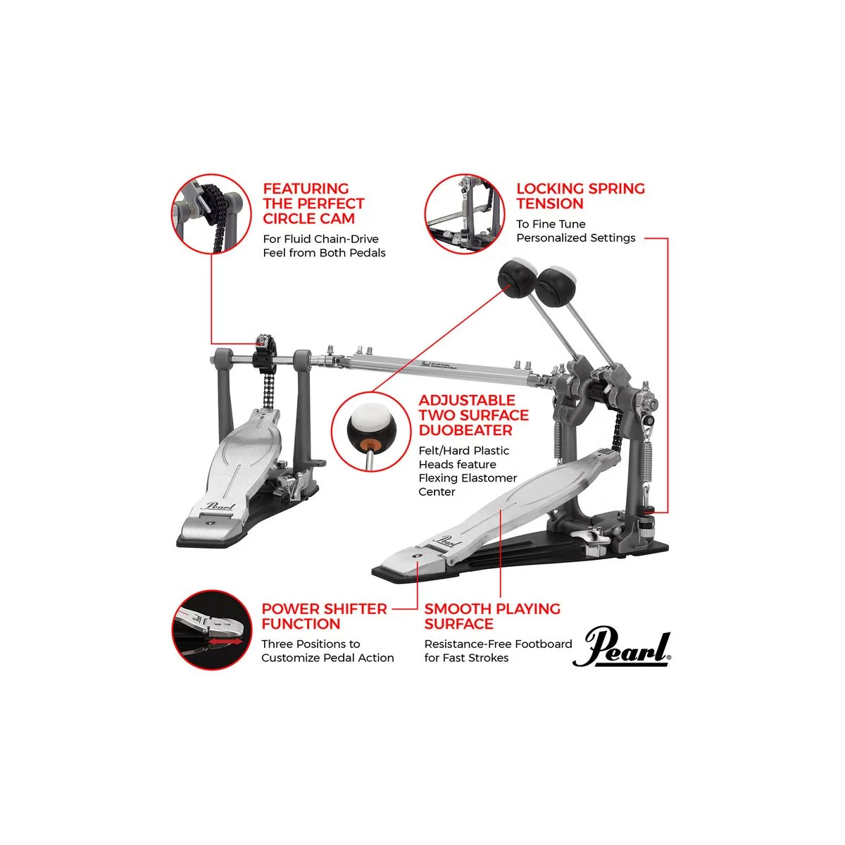 Двойная педаль Eliminator Solo Black даёт барабанщику, ориентировнному на скорость, лучшее скольжение по футборду, что в своё время сделало оригинальный Eliminator суперпопулярной педалью для бас барабана. Эта педаль для барабанщиков играющих на высокой громкости, её действие сфокусировано на плавном линейном ходе, который обеспечивает чёрный несъёмный эксцентрик Black Cam. Его равномерное, слегка утяжелённое ощущение обеспечивает правильное сопротивление, не замедляя ваш удар для увеличения мощности и снижения мышечной усталости. Другие функции оригинального Eliminator включают в себя увеличенную силу срабатывания при нажатии, роликовый зажим обода бас барабана и регулируемую функцию PowerShifter.