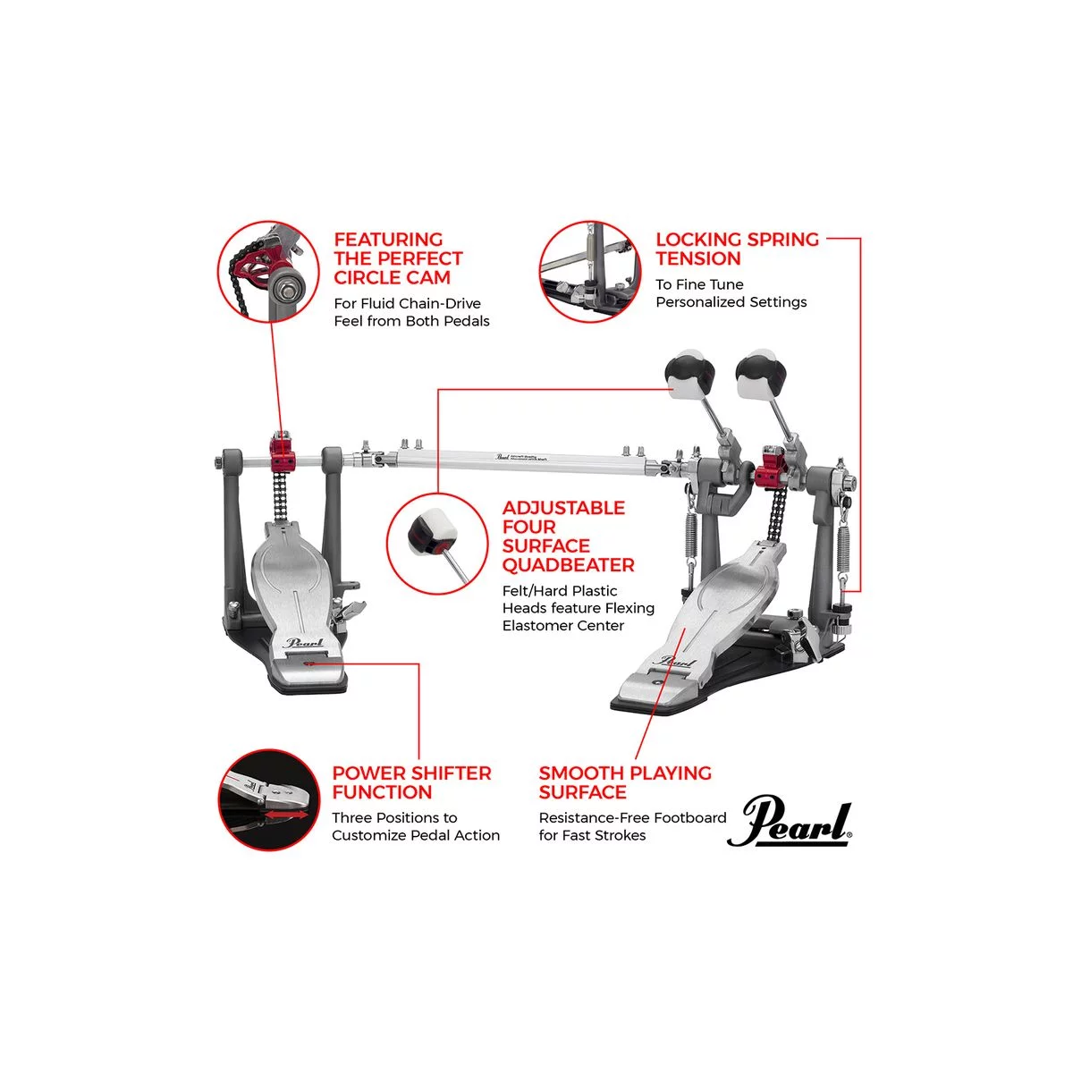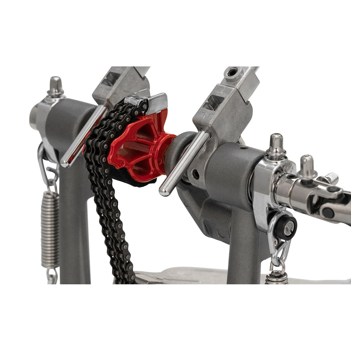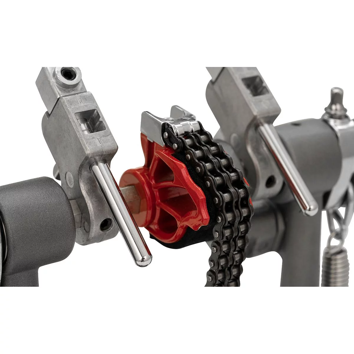 Двойная педаль Eliminator Solo Red даёт барабанщику, ориентировнному на скорость, лучшее скольжение по футборду, что в своё время сделало оригинальный Eliminator суперпопулярной педалью для бас барабана. Эта педаль для скоростных барабанщиков, её действие сфокусировано на мгновенном срабатывании, которое обеспечивает красный несъёмный эксцентрик Red Cam. Его уникальная форма обеспечивает привод с двойной цепью дополнительным рычагом, соответствующему движению ноги для более быстрого отскока при двойных ударах. Карданный вал обеспечивает исключительное ощущение от левой педали и точность на максимальной скорости. Другие функции оригинального Eliminator включают в себя увеличенную силу срабатывания при нажатии, роликовый зажим обода бас барабана и регулируемую функцию PowerShifter.