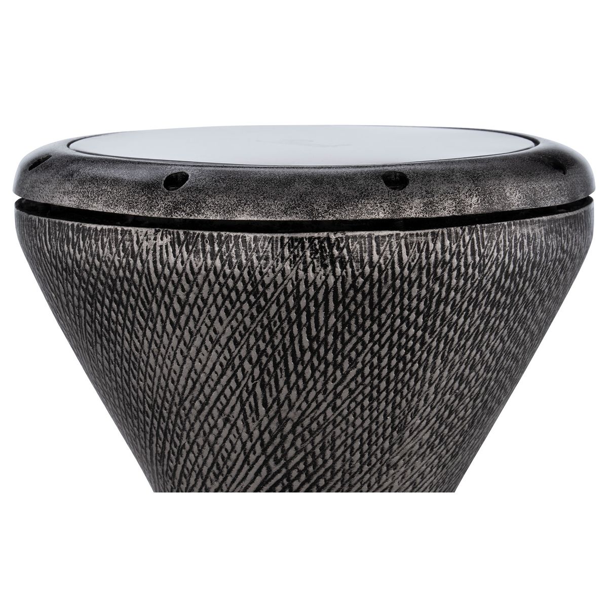 Думбек Pearl имеет классическую форму, высоту 17 дюймов и гладкий обод, удобный для рук исполнителя. Пластиковая мембрана диаметром 8,5 дюймов настраивается восемью винтами с помощью идущего в комплекте шестигранного ключа, способного натянуть мембрану очень высоко. Независимо от того, где вы будете играть на этом думбеке, его отделка Artisan Antique Aluminum не оставит вас незамеченным.