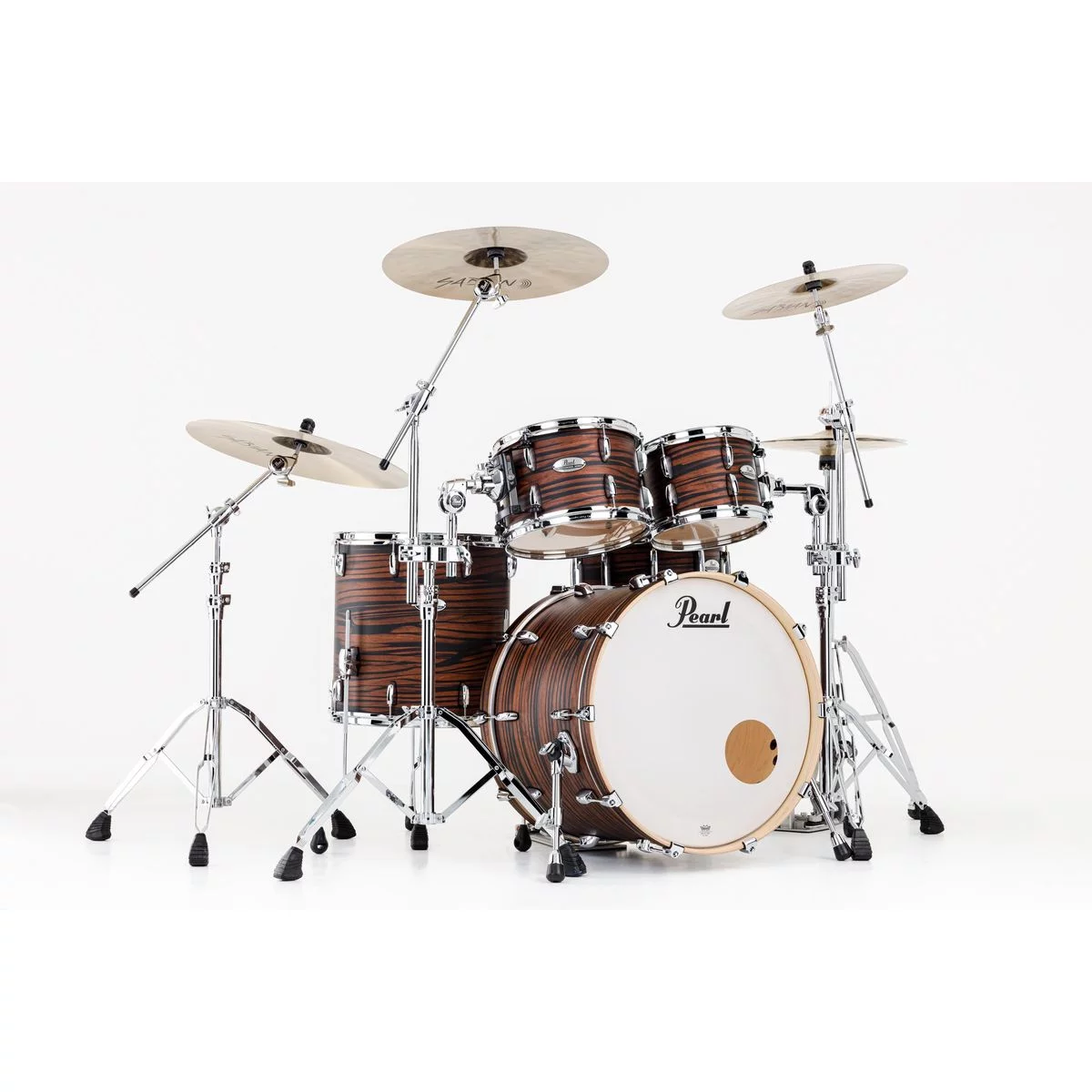 Барабаны Pearl изготавливаются с использованием первой в мире высокотемпературной гидравлической системы отвердевания, входящей в фирменный технологический процесс SST, для создания многослойного склеенного корпуса барабана, обладающего резонансом и прочностью цельного корпуса. Основа этой запатентованной технологии - ручной отбор лиственных пород древесины премиум класса по их уникальным акустическим характеристикам. Каждый слой фрезеруется до точной толщины и склеивается в двухслойные панели. Для обеспечения идеального герметичного соединения используется фирменный приём - швы внахлёст. Слои древесины пропитываются эксклюзивным клеем Pearl "AcoustiGlue", который проникает в каждую пору и высыхая обеспечивает точную однородную консистенцию древесины для оптимального резонанса. В завершении, слои помещаются в прессформу, где при высокой температуре и гидравлическом давлении 7000 кПа происходит формирование корпуса барабана, обладающего чрезвычайной прочностью и превосходным звучанием. Все корпуса проверяются на ровность краёв и округлость внутренних и внешних стенок перед сверлением и сборкой, чтобы обеспечить превосходную посадку пластика и настройку.