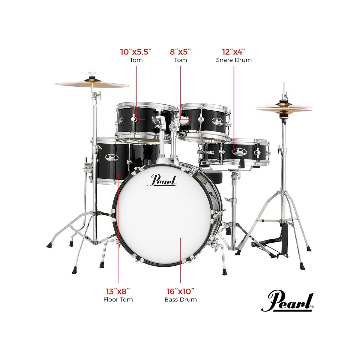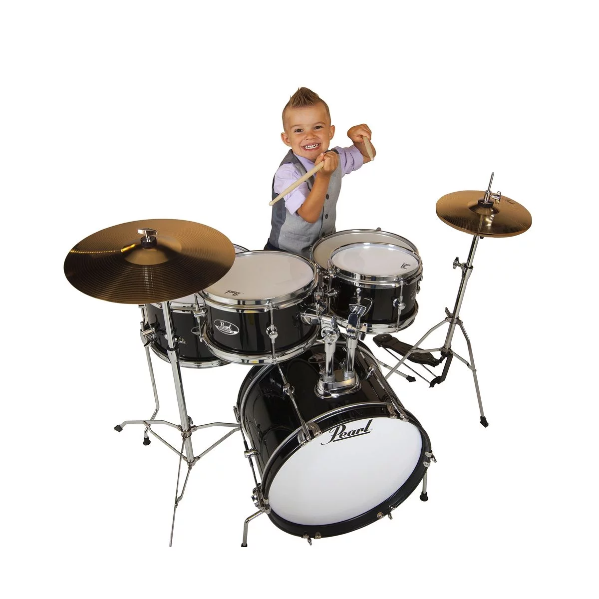 Серия Roadshow Jr. компании Pearl разработана специально для детей в возрасте до 10 лет. И это не игрушка, выглядящая как барабанная установка, это настоящая, звучащая, настраиваемая установка, имеющая в комплекте всё необходимое для полноценной игры, барабаны которой сделаны из азиатского белого тополя, также как у полноразмерных установок серии Roadshow.