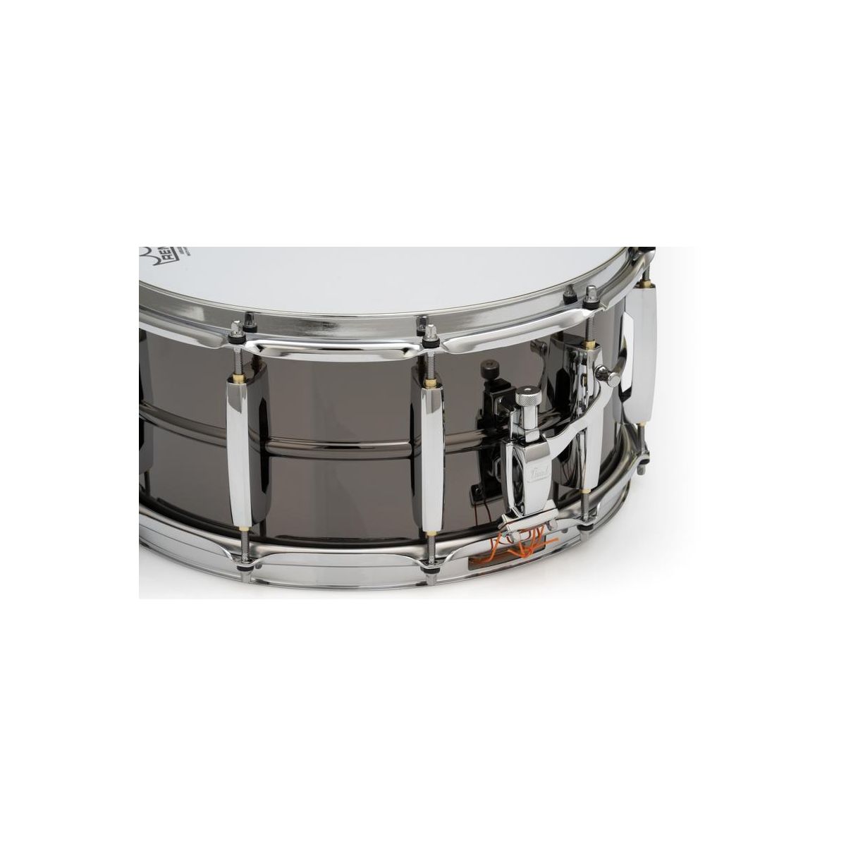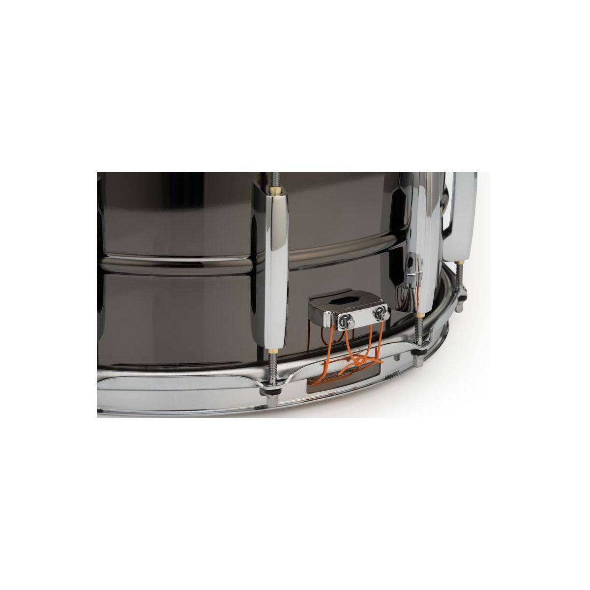 Материал корпуса - латунь 1 мм с жёлобом, даёт то, что большинство считает типичным звучанием малого барабана, более глубокое и тёмное, в котором никогда не будет недостатка в резкости