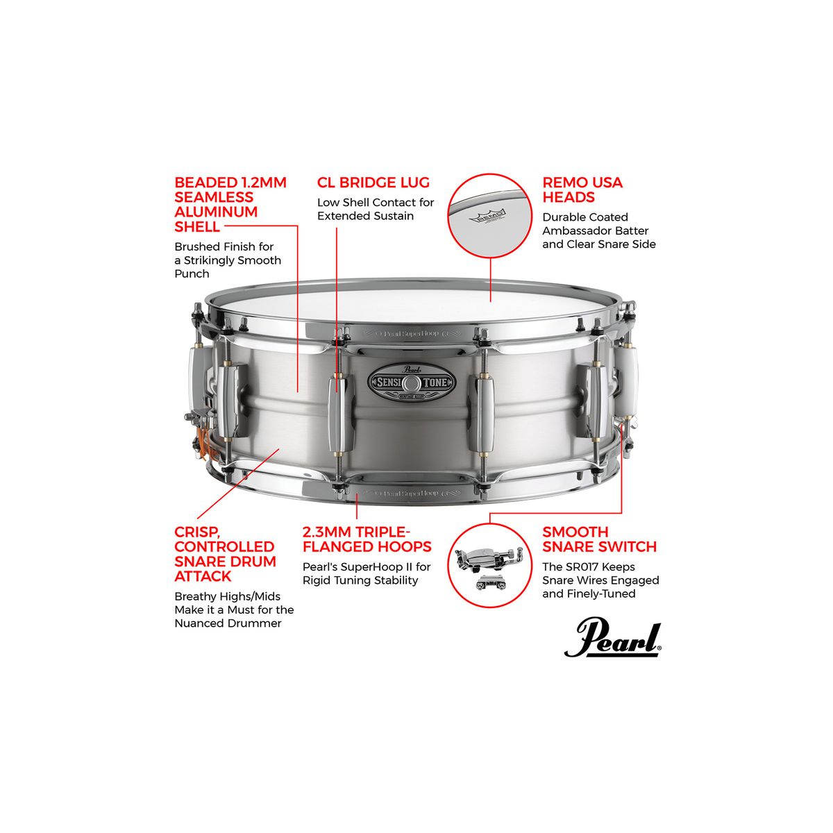 Основываясь на позиционировании малых барабанов Pearl SensiTone как инструментов с хорошим соотношением цена/качество, алюминиевые барабаны Heritage Alloy Aluminum имеют бесшовный корпус с жёлобом толщиной 1,2 мм, обеспечивающий сухое, сфокусированное, потрескивающее звучание, обладающее всеми необходимыми на концерте штрихами, что делает данные барабаны стандартом для исполнителей с тонким вкусом. Они тонально универсальны, с потрескивающей проекцией и гладкими обертонами. Звучание барабанов SensiTone всегда основывалось на базе сплавов The Heritage, обладающих непосредственными, жизненными тонами, напоминающими лидеров легендарных хит-парадов но с современной чувствительностью.