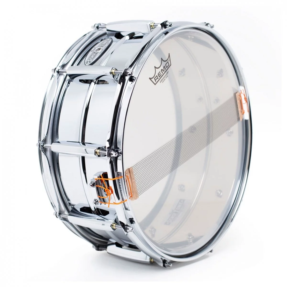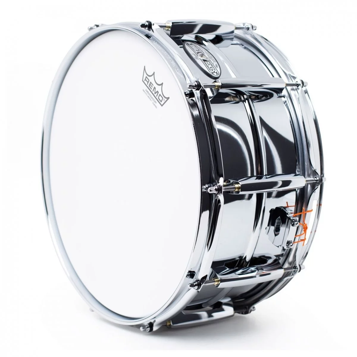 Материал корпуса - хромированная сталь 1 мм с жёлобом, обеспечивает звонкий треск с яркими среднечастотными обертонами и чётким высоким звучанием