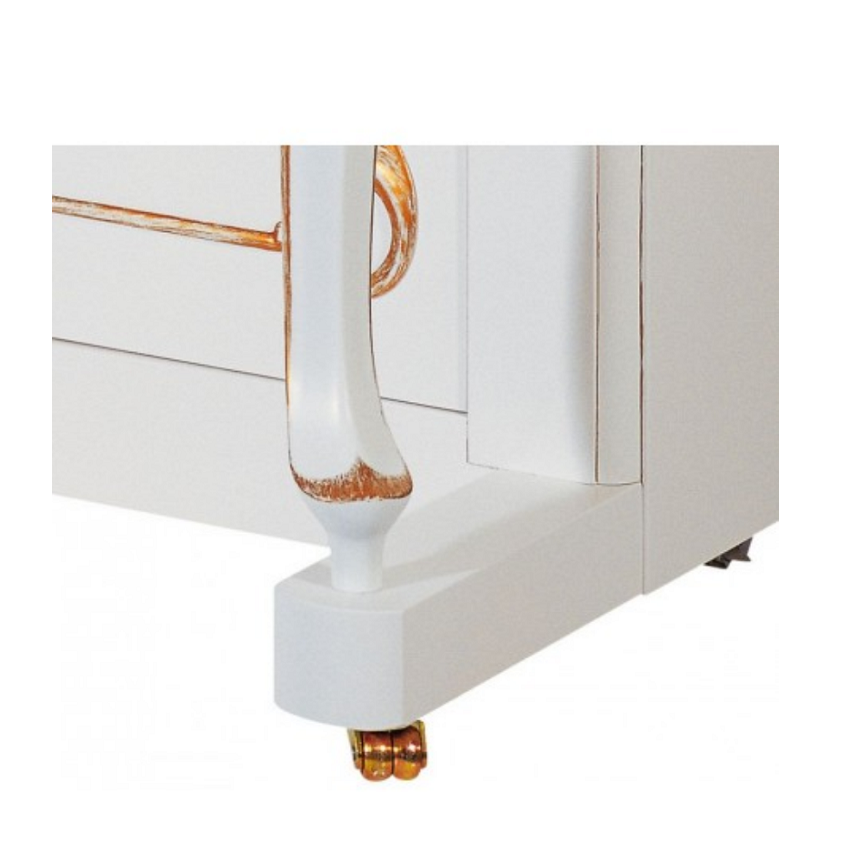 Его отличительная черта – наличие обрамлений и резных позолоченных элементов, составляющих необычный рисунок на белом покрытии.