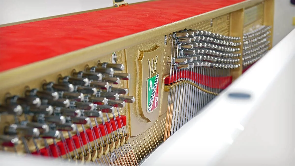 88 клавиш, с глубиной снижения 10 мм. Элементы делаются из горной ели и покрываются акрилом.