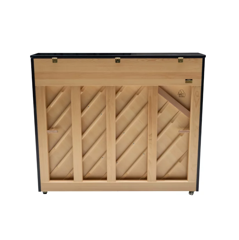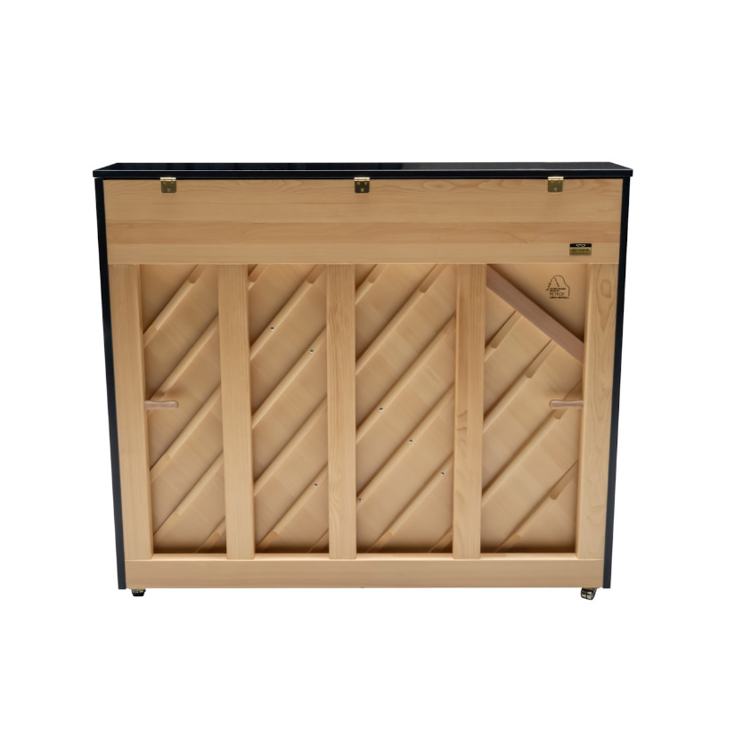 88 клавиш, с глубиной снижения 10 мм. Элементы делаются из горной ели и покрываются акрилом.