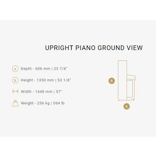 • 88 клавиш, с глубиной снижения 10 мм. Элементы делаются из горной ели и покрываются акрилом.