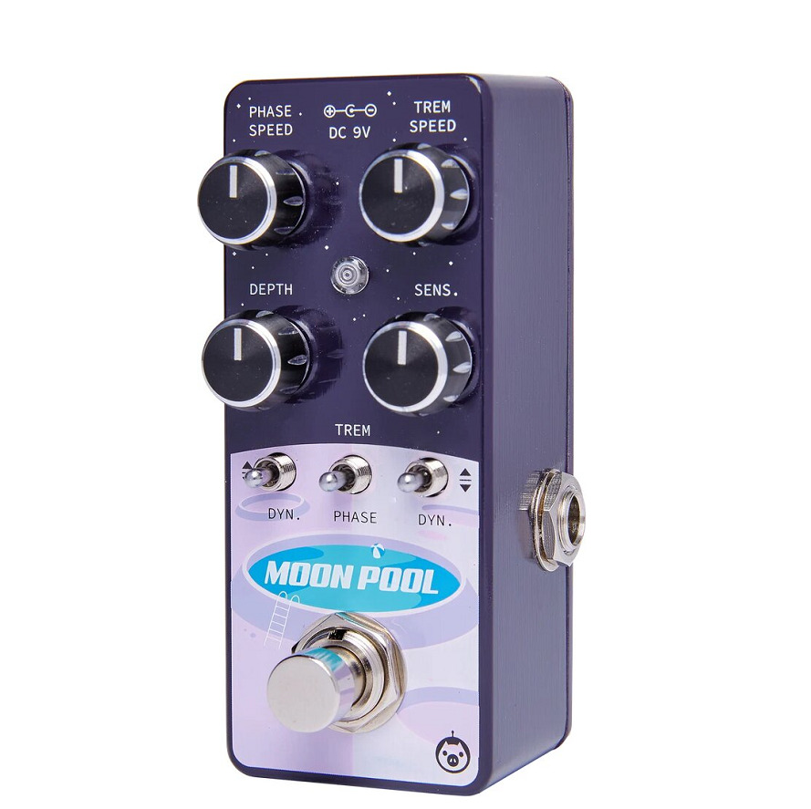 Moon Pool - это аналоговый фейзер и тремоло в одном с независимыми регуляторами, позволяющими изменять скорость одного или обоих эффектов.