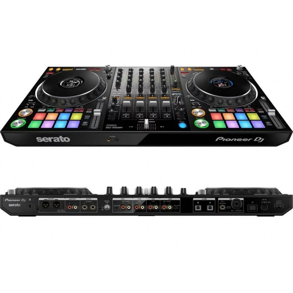 PIONEER DDJ-1000 представляет собой 4-канальный профессиональный DJ контроллер для rekordbox. При помощи этого контроллера ди-джеи смогут открыть для себя и слушателей все возможности Rekordbox DJ. В конструкции контроллера используются полноразмерные джоги с LCD-дисплеями по центру. На этих дисплеях отражается информация о BPM трека, время воспроизведения, информация о горячих точках и петлях, прочая информация.  Также контроллер оснащен 16 performance-пэдами, двумя портами USB и кроссфейдером Magvel Fader. Все органы управления расположены очень удобно, точно также, как на популярных устройствах CDJ/DJM. Контроллер имеет магнитные кроссфейдеры, которые рассчитаны на более чем десять миллионов движений. Коммутация представлены следующими разьемами: входы - 2 LINE (RCA), 2 PHONO/LINE (RCA), 1 MIC (XLR & 1/4 TRS), USB - 2 х USB В. Выходная секция: 2 MASTER (XLR, RCA), 1 BOOTH (1/4 TRS), 2 PHONES (1/4 TRS, 3.5-mm stereo mini-jack). Габариты контроллера 708 х 73,4 х 361,4 мм, вес - 6 кг.
