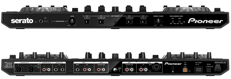 DDJ-SX оснащен различными входами и выходами для максимальной гибкости в использовании. Четыре входа позволяют диджеям подключить к контроллеру CDJ-плееры и/или проигрыватели винила для использования его в качестве отдельного микшера. Два мастер-выхода (XLR и RCA) и мониторный выход делают возможным подключение напрямую к профессиональным звуковым системам. А два микрофонных входа открывают новые возможности для MC и общения с публикой.
