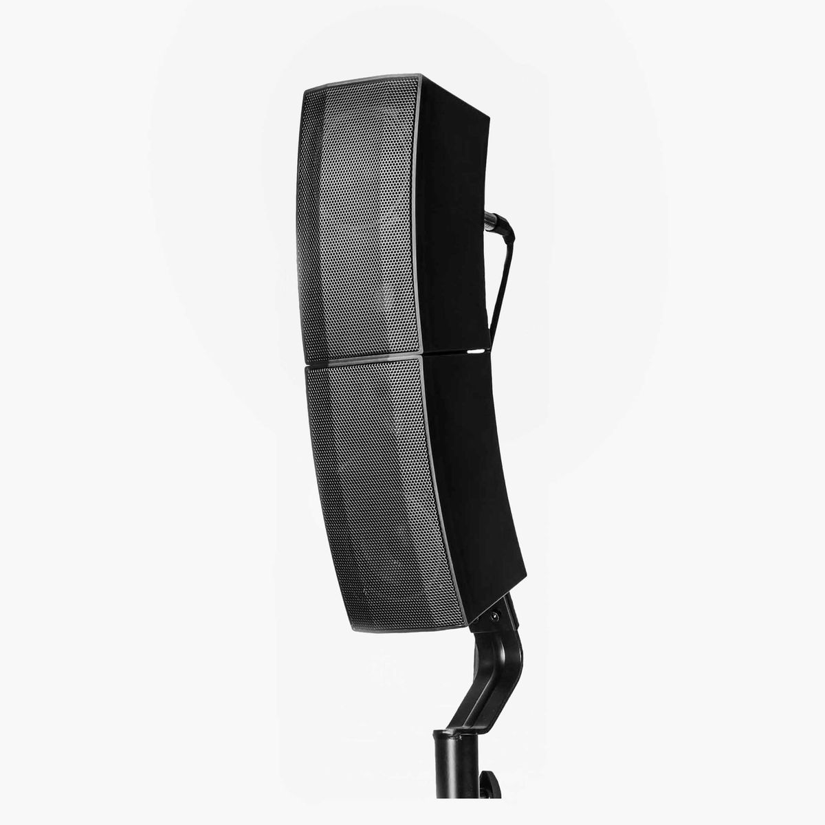 Легкая, компактная, изогнутая вертикальная акустическая система оснащена двумя 4-дюймовыми динамиками и двумя высокочастотными компрессионными драйверами,