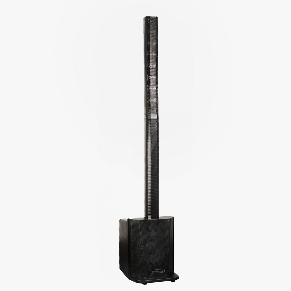 Мощный усилитель класса D выдает 1050 Вт мощности через 10-дюймовый сабвуфер и восемь 3-дюймовых высокочастотных динамиков, чего вполне достаточно практически для среднеформатного концерта.