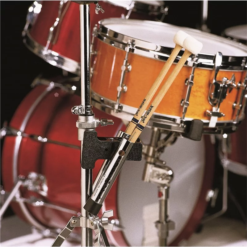 Эти держатели для палочек легко крепятся к стойкам для тарелок или к другим металлическим частям. Ваши палочки и щетки всегда будут под рукой.