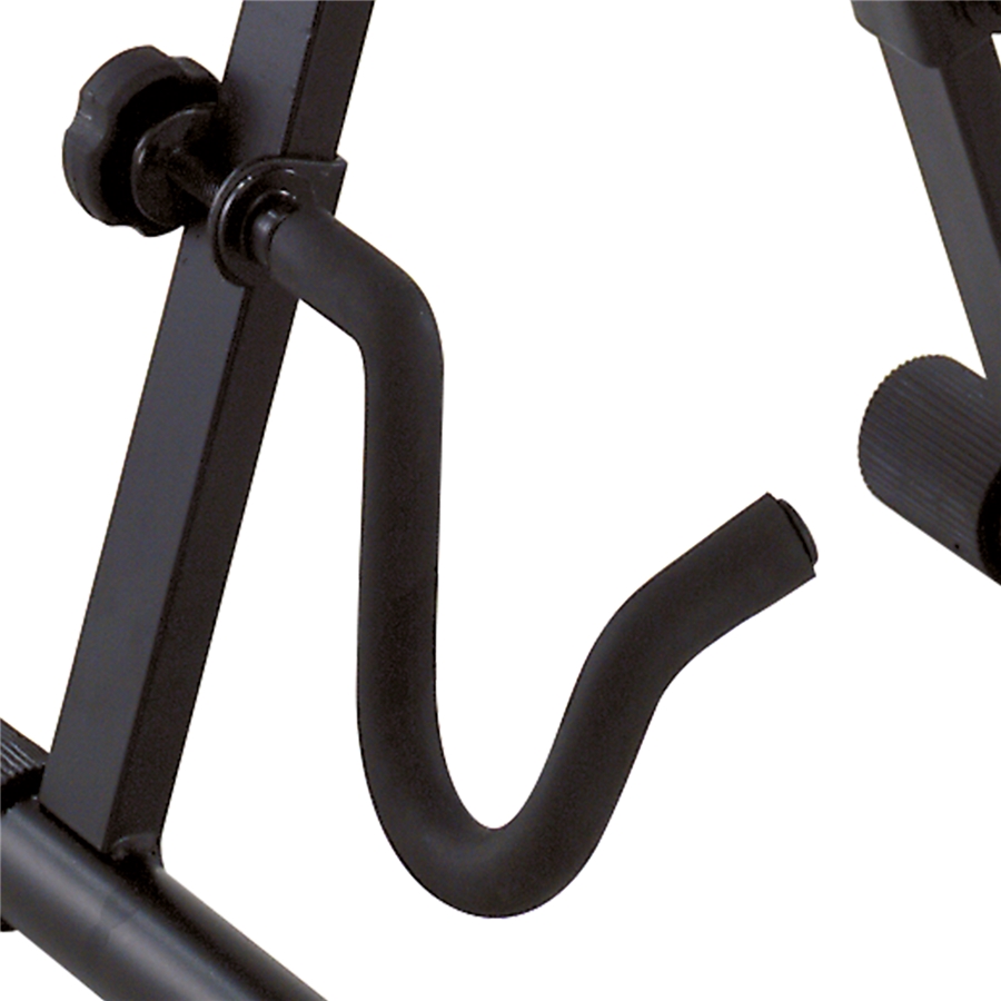 • Подпорка для грифа с регулиремой высотой имеет предотвращающую падение гитары с подставки защелку с мягким покрытием