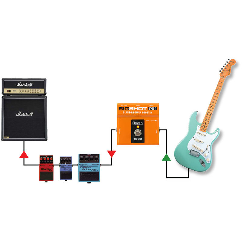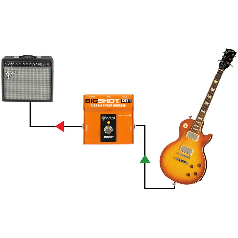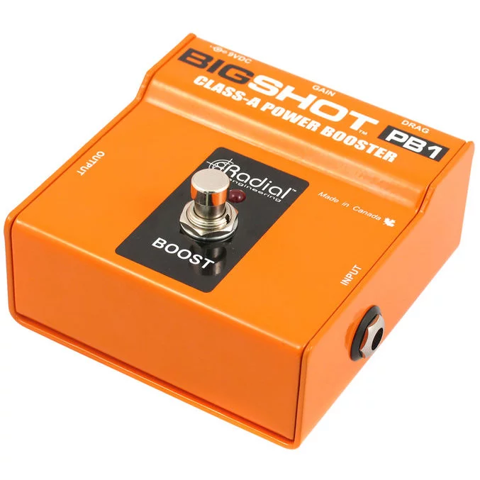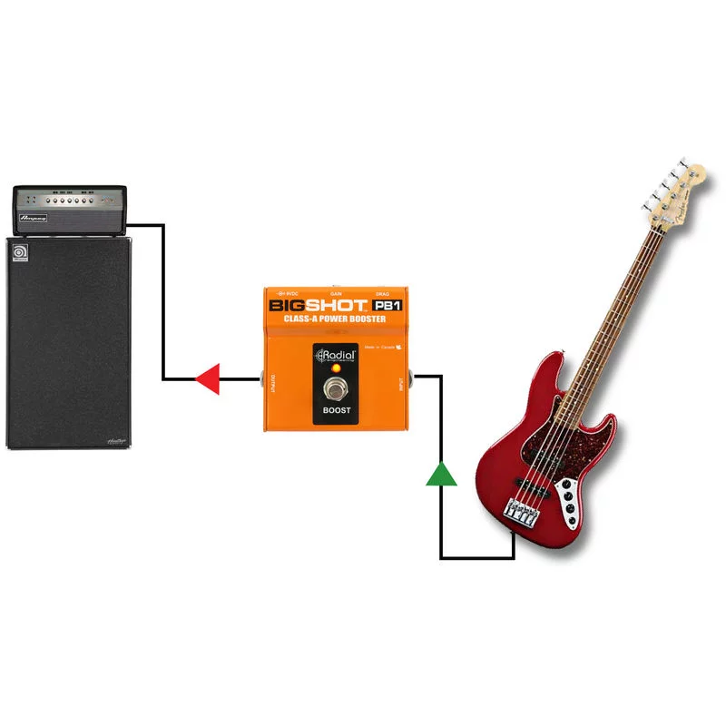 Педаль BigShot PB 1 выполняющая функцию предусилителя, имеет вход и выход (джеки), регулятор входного сопротивления буфера (под отвертку), регулятор усиления (до 15 дБ, под отвертку), переключатель (металлическая кнопка) и светодиодный индикатор активности предусилителя (входной буфер функционирует постоянно, независимо от предусилителя), разъем питания. Питание осуществляется постоянным напряжением 9 В от адаптера (приобретается отдельно).