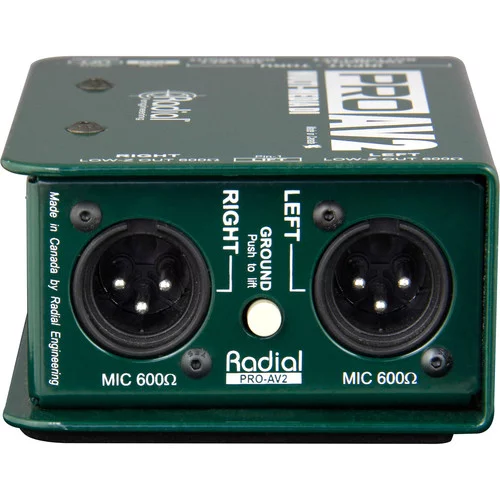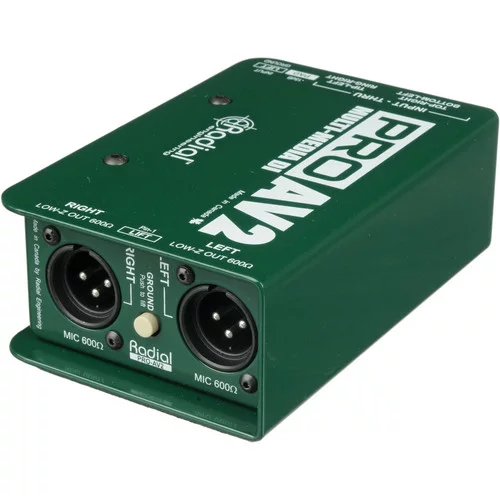 Pro-AV2 - пассивный директ-бокс, специально разработанный для подключения аудио-видео устройств. Для удобства и широкого применения устройство оснащено инструментальными входами на 1/4 Jack, RCA- разъемами для подключения ноутбуков, DVD-проигрывателей и MP-3 плееров. Фирменные Radial трансформаторы способны выдерживать очень высокие уровни сигналов, поддерживая линейность в диапазоне 20-20кГц. PRO-AV2 обеспечивает полностью дискретные два канала, что делает его идеальным решением для подключения ноутбуков и DVD-плееров.