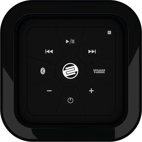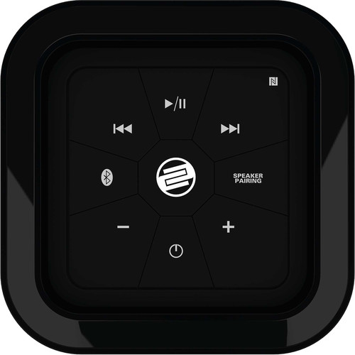 Панель управления, расположенная на верхней части акустической системы, обеспечивает удобный доступ к режимам воспроизведения: Play/Pause, Previous/Next Track, Volume +/-, функции сопряжения Bluetooth Pairing и к переключателю On/Off.