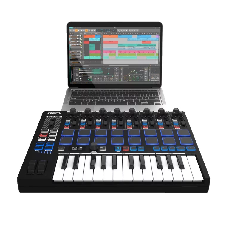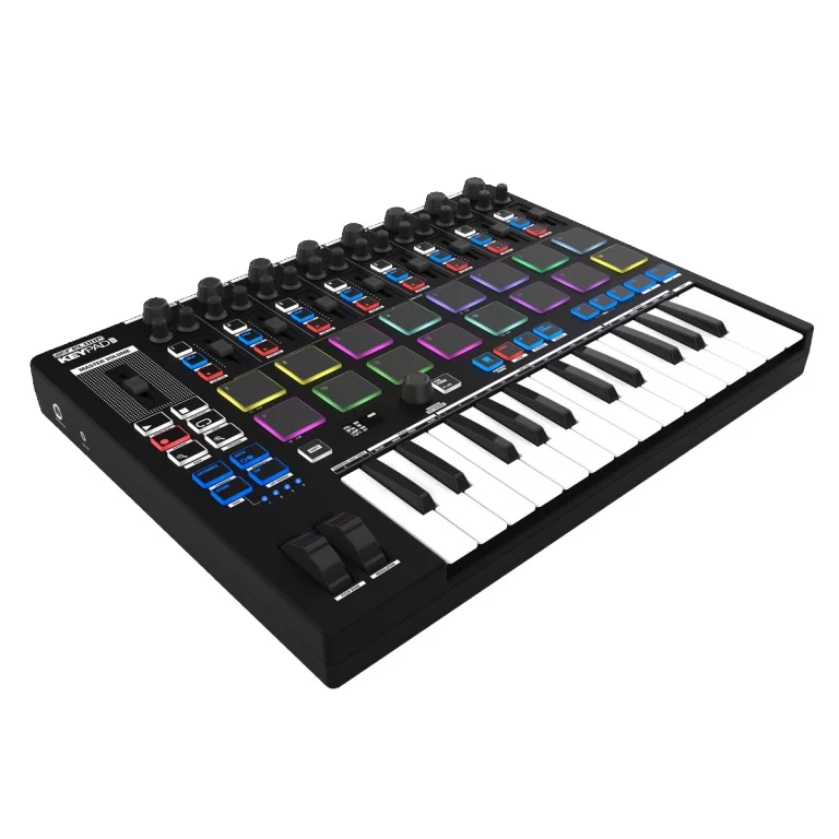 Клавиатура оснащена 25 чувствительными к скорости нажатия клавишами. Клавиатура Keypad Pro также удовлетворяет потребности профессиональных клавишников благодаря встроенным колесам питча и модуляци. Другие функции включают в себя арпеджиатор с широким спектром мелодий, сустейн, быстрый выбор скорости нажатия клавиш, функцию аккордов, упрощающую воспроизведение обычных аккордов, и режим продуманной гаммы, в котором нужная нота всегда воспроизводится в четырех различных режимах, обеспечивая безграничное количество творческих композиций.