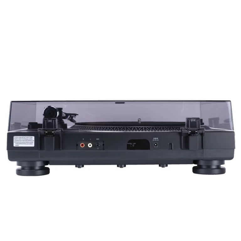 Секция питча с диапазоном + /-10% также подходит для точной регулировки скорости. Встроенный предусилитель phono (фонокорректор) позволяет выводить сигнал через phono или линейный выход, что означает никакого дополнительного заземления не требуется.
