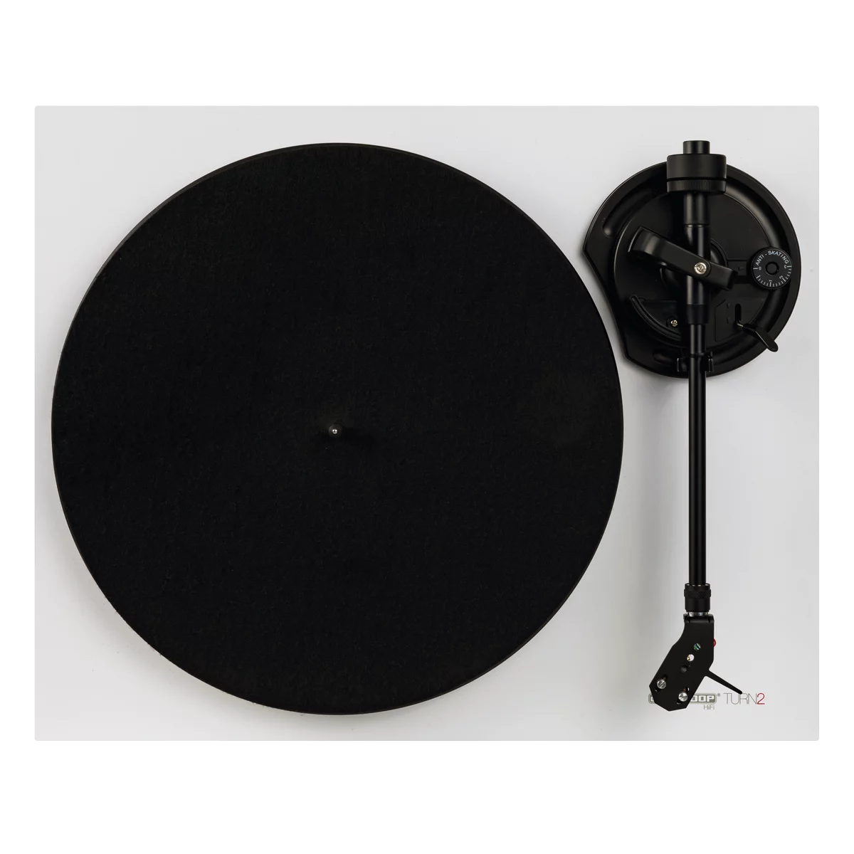 Проигрыватель TURN2 оборудован взвешенным прямым тонармом с угловым креплением картриджа и самим картриджем Ortofon, который превосходно держит воспроизводимую дорожку. Подразумевается ручное приведение тонарма в рабочее положение для идеального позиционирования иглы на записи. Противоскользящий механизм обеспечивает стабильное воспроизведение