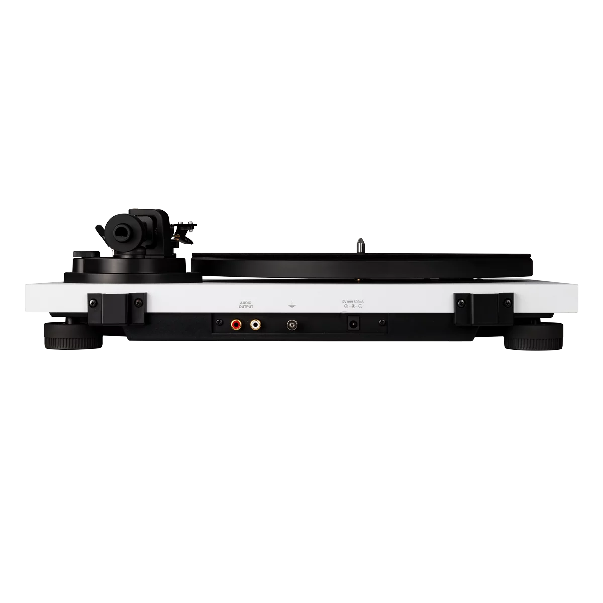 Наряду с разъемом для подключения питания, задняя панель TURN 2 оборудована двумя позолоченными устойчивыми к коррозии разъемами RCA и отдельной клеммой заземления для избегания возникновения земляных петель. Все разъемы съемные, что подразумевает усовершенствование в будущем или простую замену деталей. Окантовка, выполненная из тяжелого МДФ, отличается строгим дизайном и доступна в матовом черном, красном или белом исполнении. Высокоинерционный литой алюминиевый опорный диск с хромированной окантовкой гармонирует со строгим дизайном проигрывателя.
