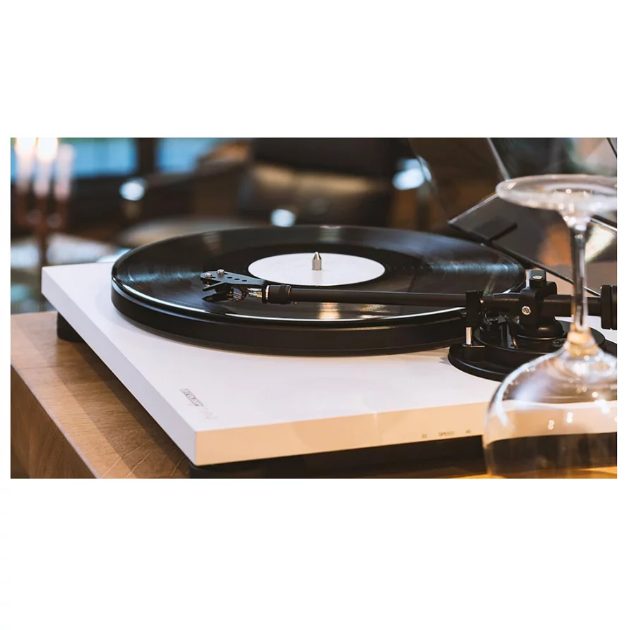 Ременной привод проигрывателя TURN 2 обеспечивает постоянную скорость вращения опорного диска с минимальными стартовыми искажениями и дрожанием. Встроенный мотор постоянного напряжения с минимальным коэффициентом вибрации исключительно тихий, это означает, что данный проигрыватель идеально подходит для прослушивания музыки в жилых помещениях. Скорость вращения мотора переключается вручную между двумя режимами – 33 и 1/3 и 45 об./мин. Выбор скорости осуществляется переключателем, расположенным под корпусом, что подчеркивает стильный минималистичный дизайн проигрывателя.