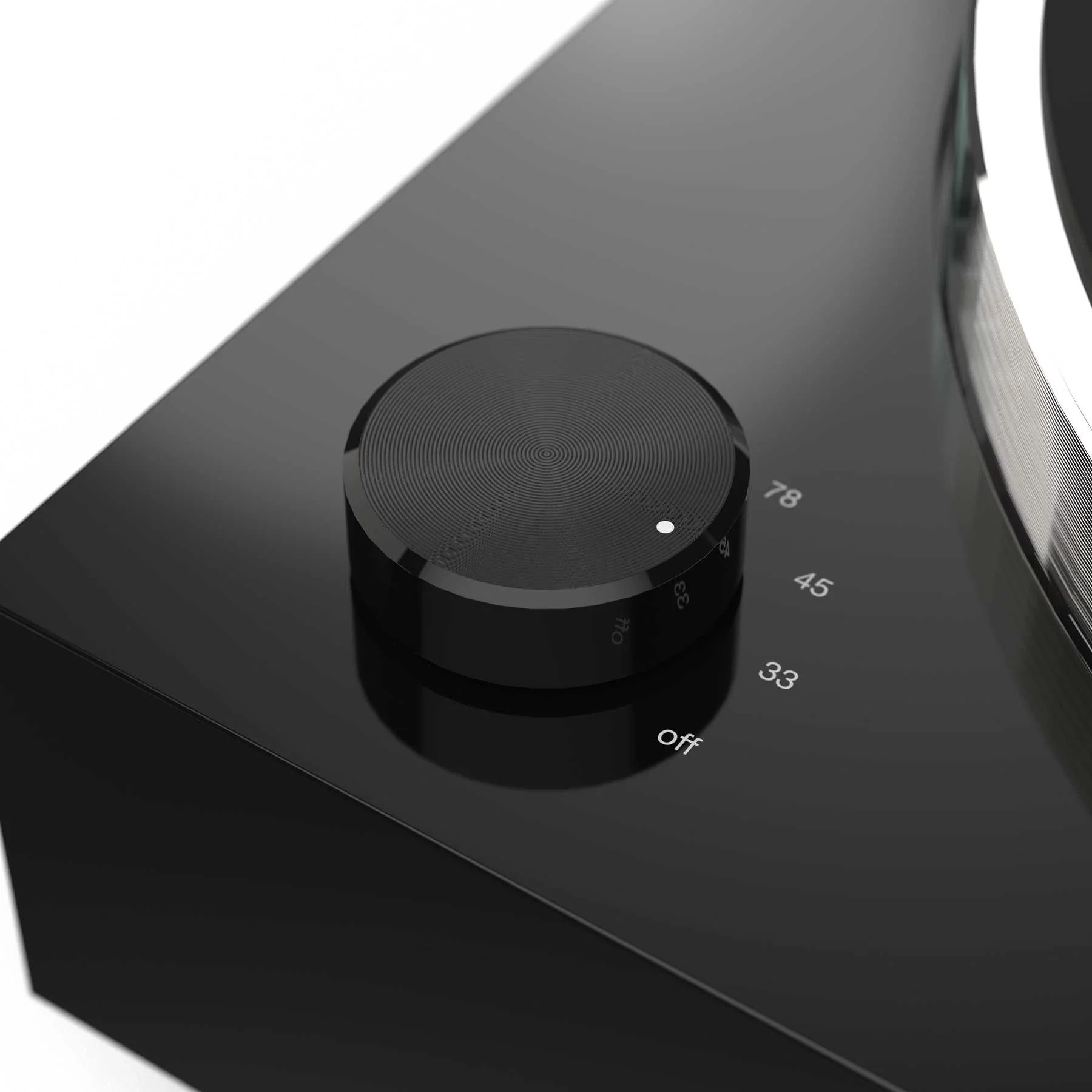 • Полностью ручное управление с управлением двигателем-переключатель для выбора трех различных скоростей (33, 45 и 78 об / мин)