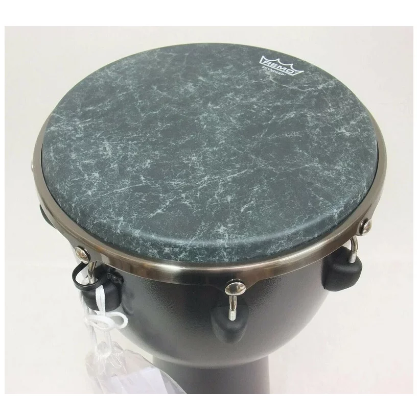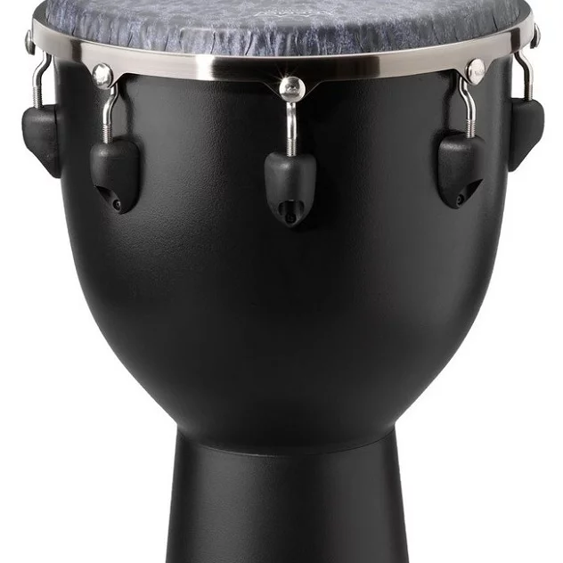 Корпус джембе Apex гладкий, лёгкий, ударопрочный и долговечный, выполненный из чёрного ABS пластика, спроектирован для комфортной игры и сфокусированного сухого звука. Стальной обод, специально разработанные лаги и настроечные винты с крючками особой конструкции обеспечивают лёгкую настройку. Пластик серии Skyndeep с имитацией внешнего вида натуральной кожи чёрного козла, способен обеспечить широкий диапазон громкости.