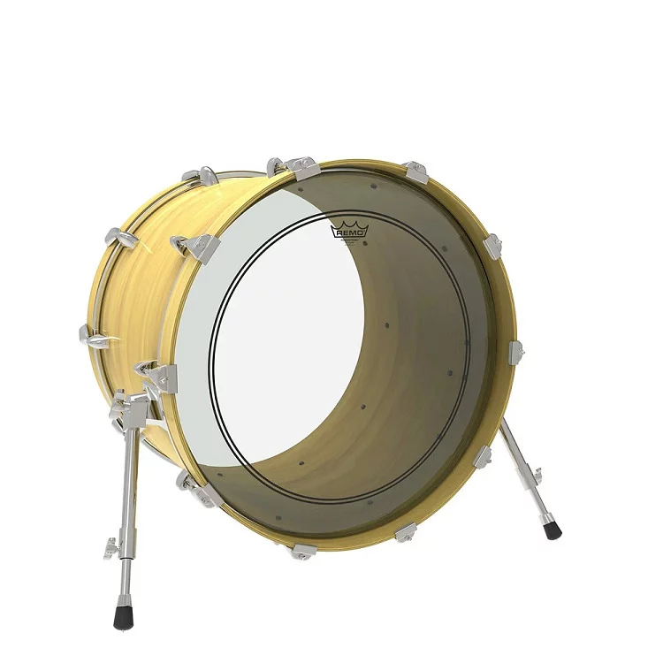 22" пластик для бас барабана однослойный, прозрачный, с демпфирующим кольцом, наклейка в комплекте.