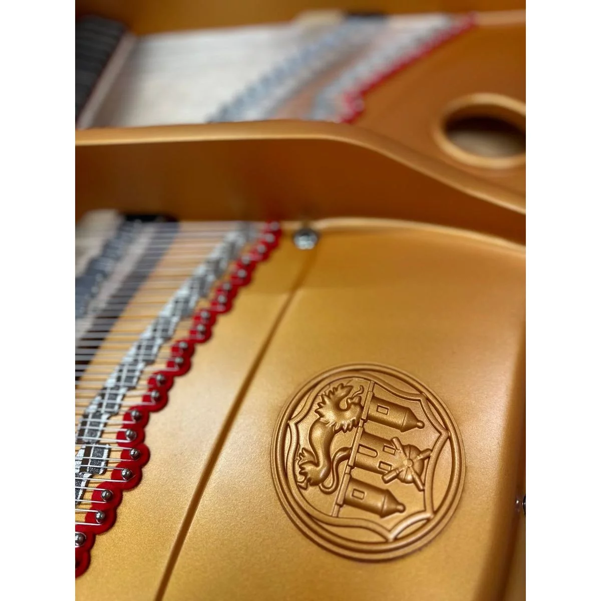 Рама рояля отлита из чугуна, а колки изготовлены из немецкой никелированной стали – это говорит о высокой точности и прочности инструмента, его способности удерживать изначальные настройки предельно долго.