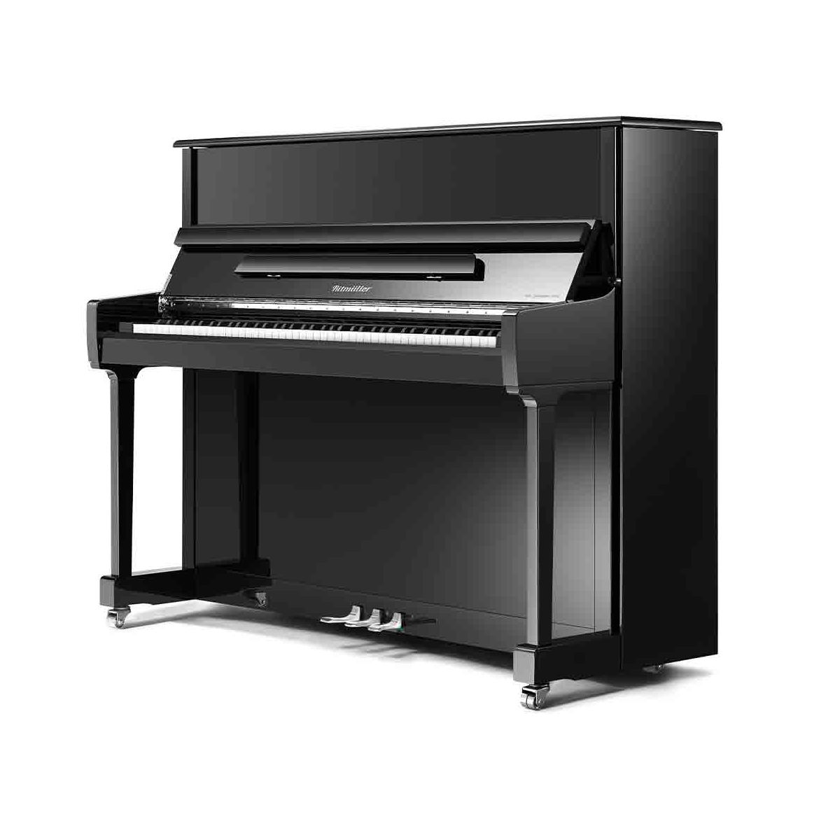 Акустическое пианино, высота 114 см, цвет чёрный полированный, серебряная фурнитура.