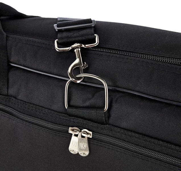 * 1 съемный мягкий ремень с карманом для мобильного телефона шириной 50 мм (на карабинах) регулируемой длины для транспортировки синтезатора на плече