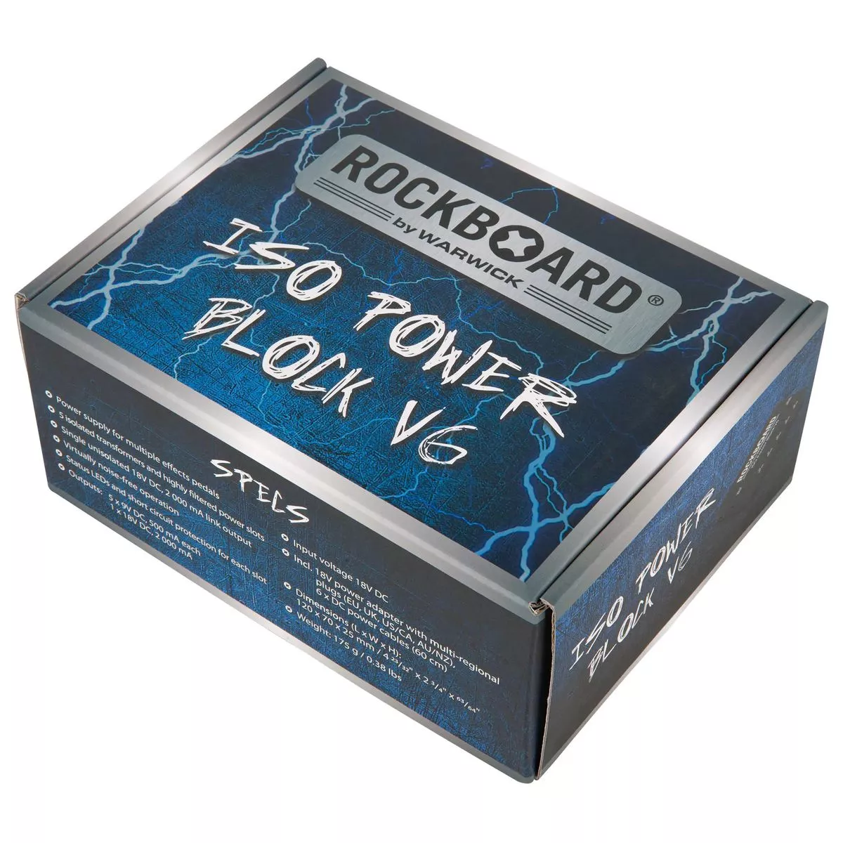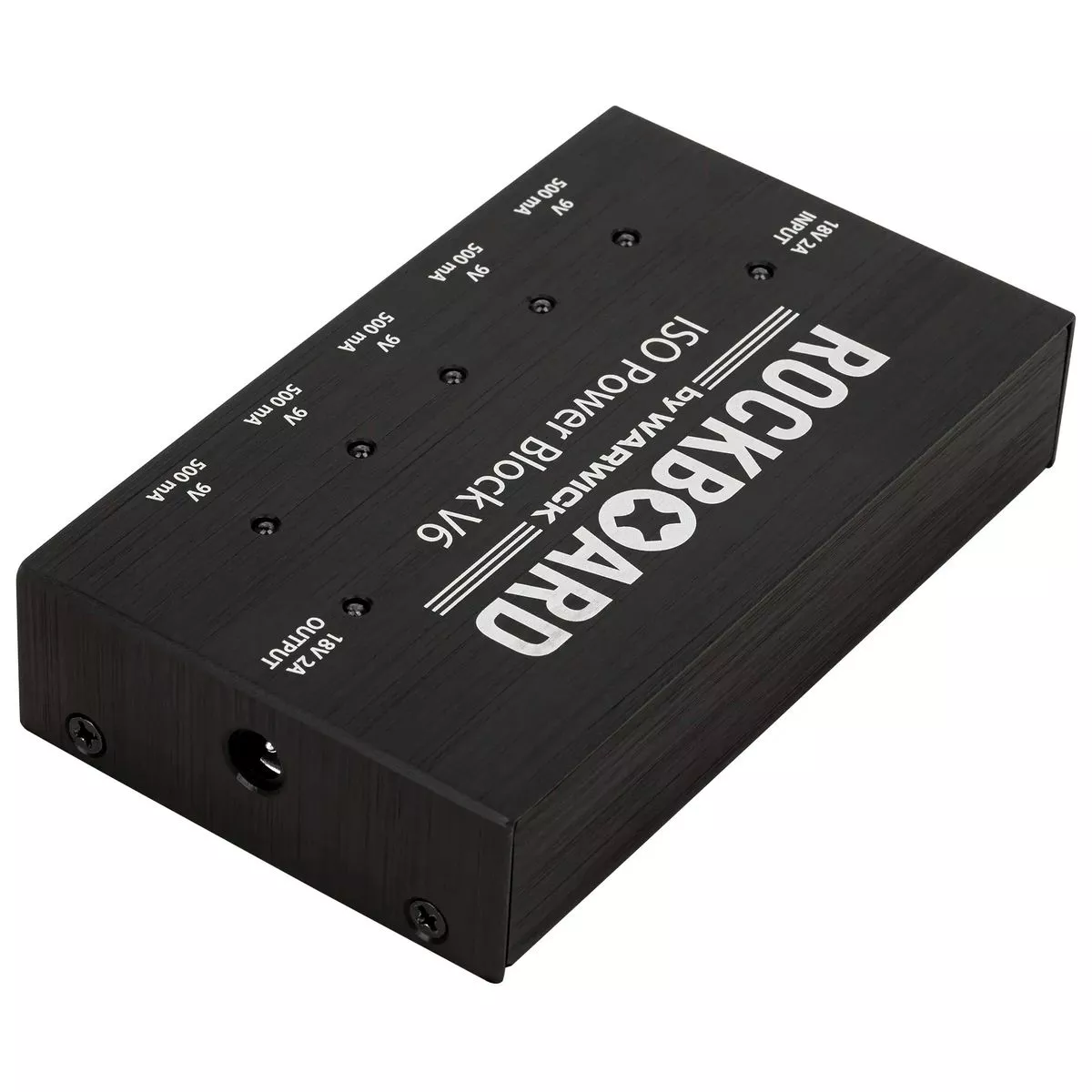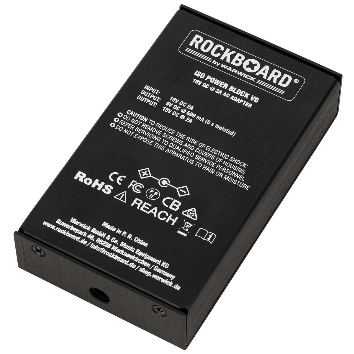 RockBoard ISO Power Block V6 - это многофункциональный источник питания для педалей эффектов с 5 изолированными разъемами питания 9 В постоянного тока и одним выходом 18 В постоянного тока для последовательного подключения нескольких блоков питания ISO V6 для больших настроек.