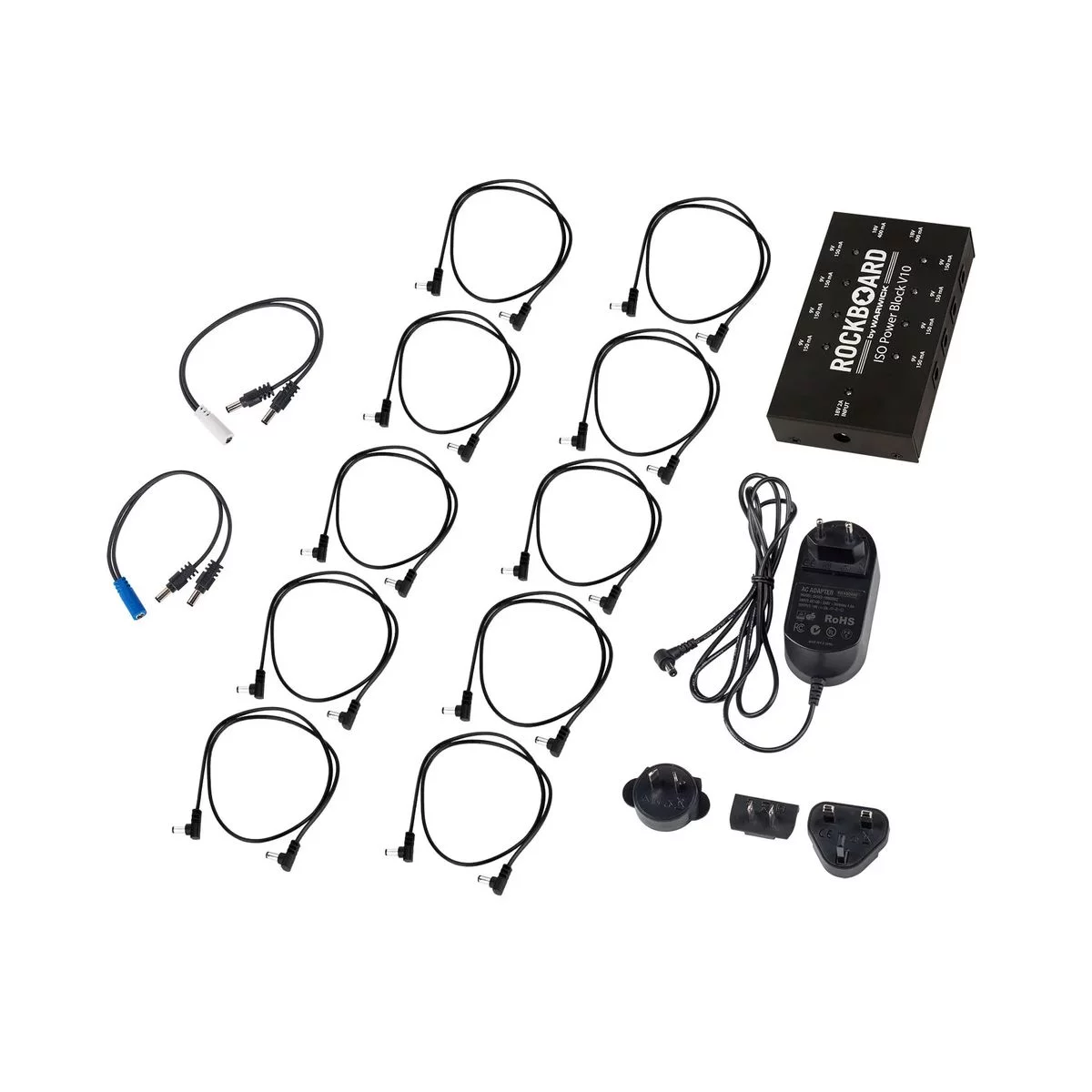 Прилагаемые кабели : 10x 60 см кабель для питания постоянного тока педаль эффекта + 1X синий y-кабель для объединения двух выходов при удвоении напряжения + 1X белый Y-кабель для объединения двух выходов при удвоении напряжения
