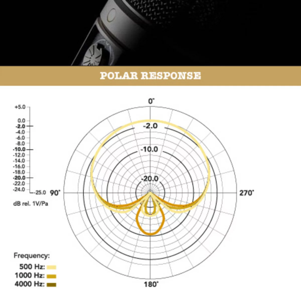 Первый в мире конденсаторный микрофон с большой диафрагмой и переключателями направленности, фильтрами и аттенюатором на корпусе.