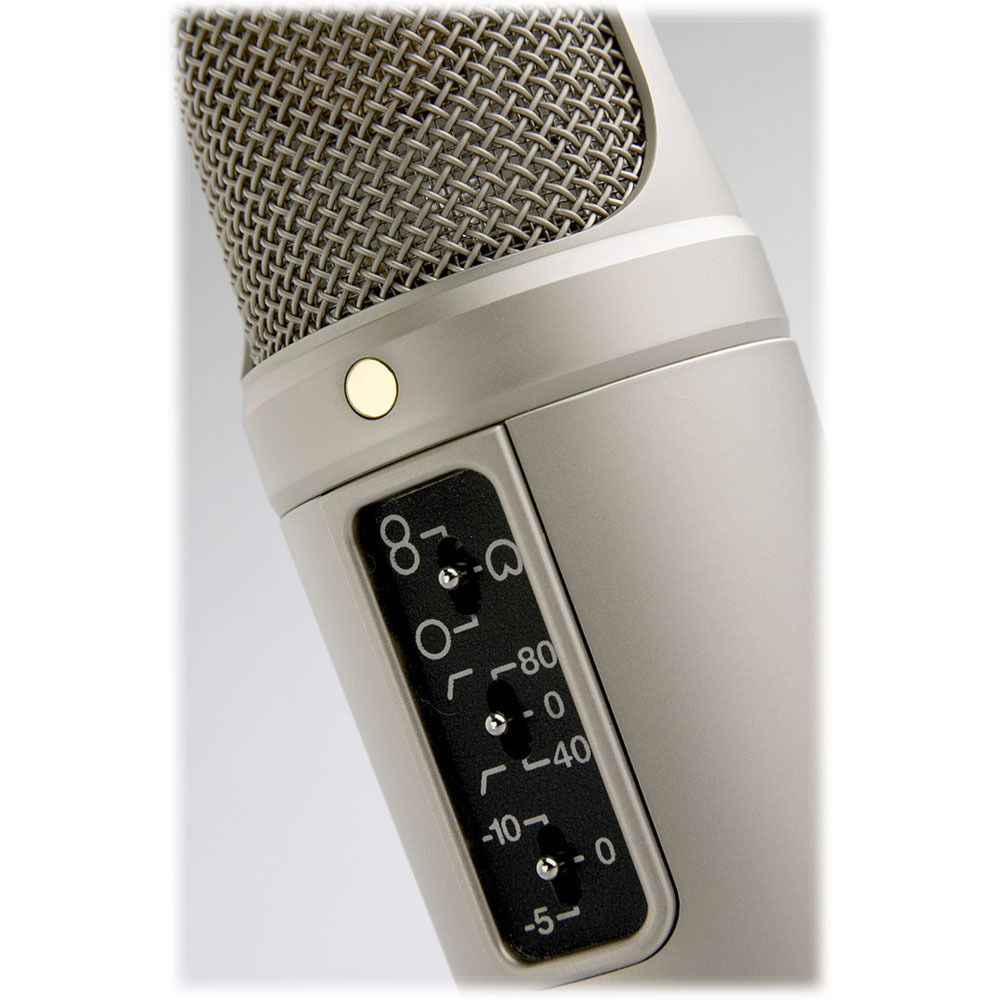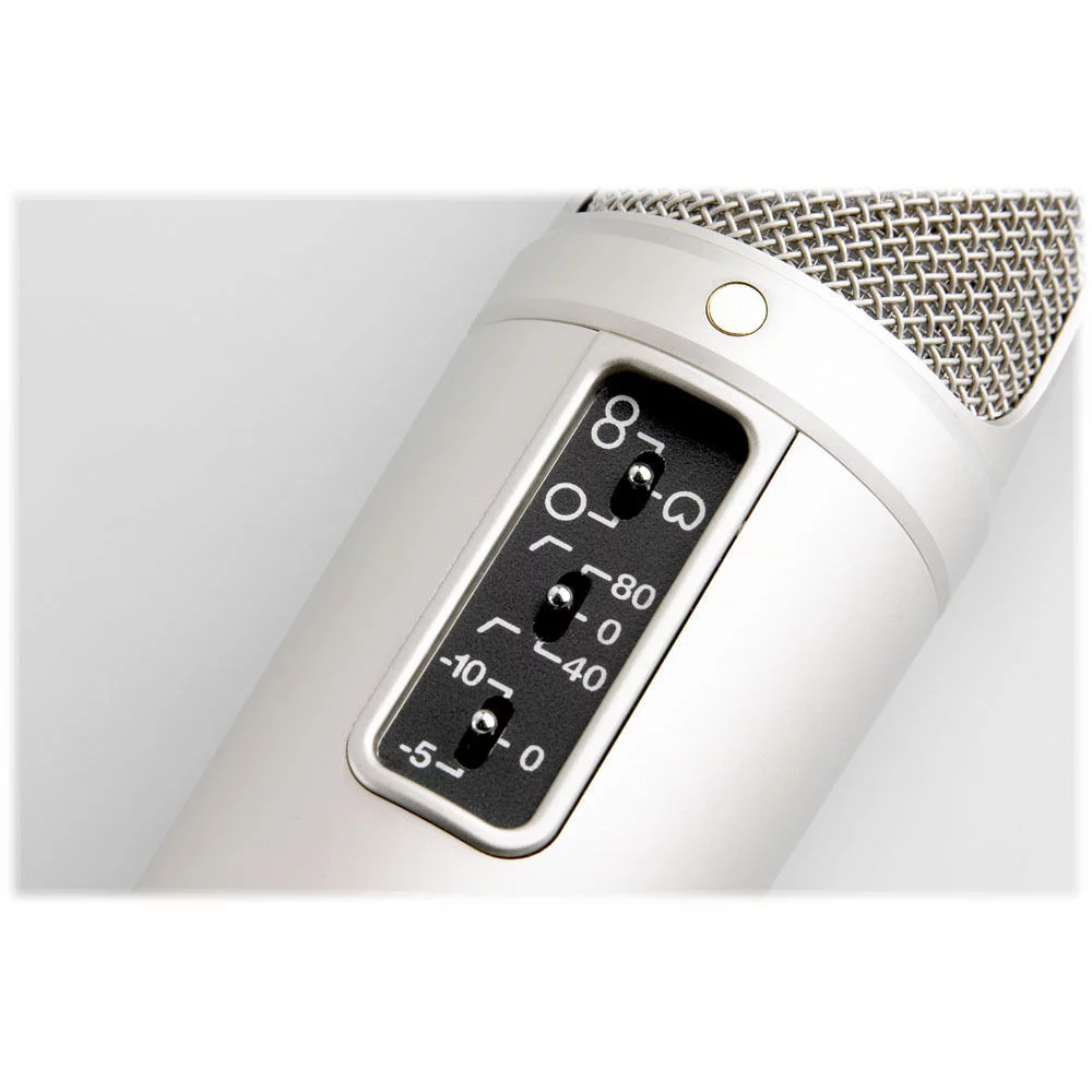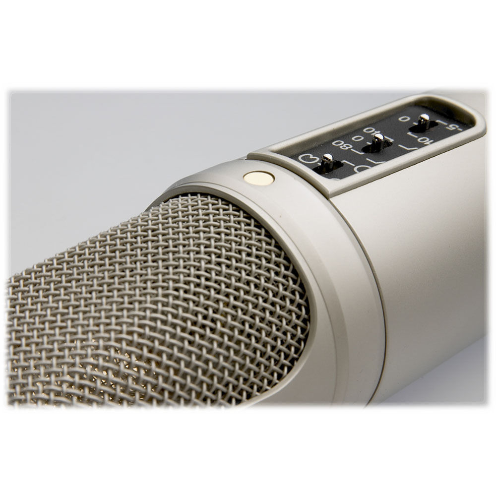 Профессиональный микрофон с большой диафрагмой оснащен трехпозиционным переключателем направленности, аттенюатором и обрезным фильтром НЧ.